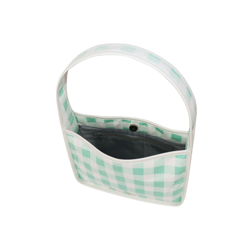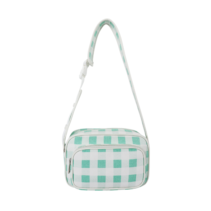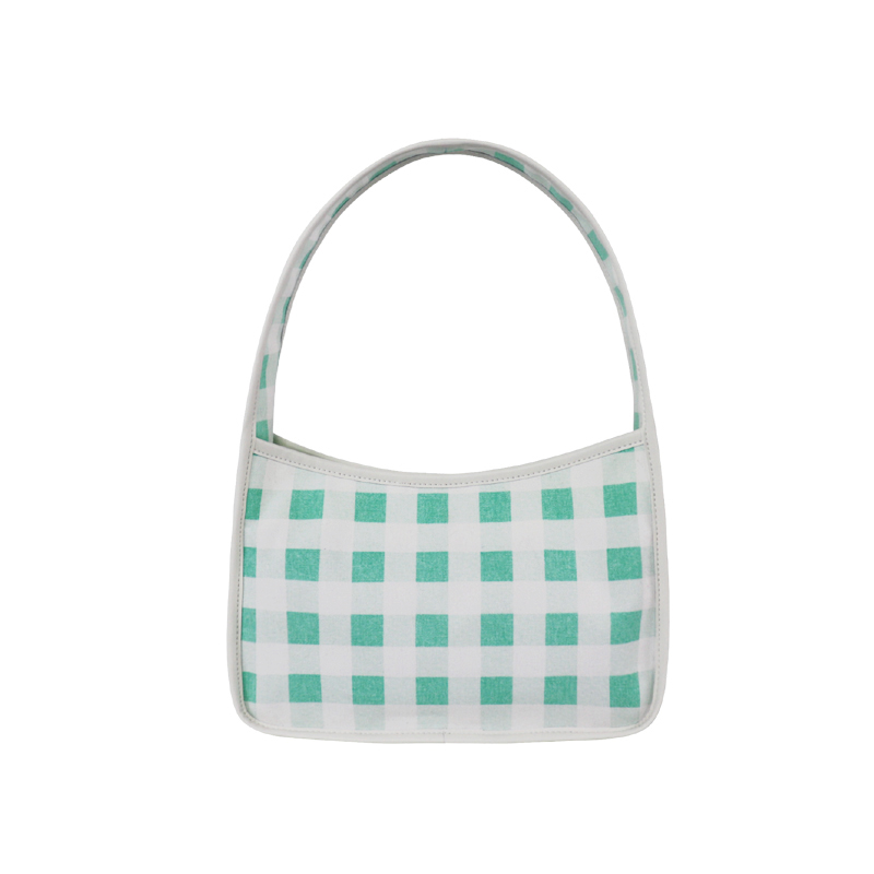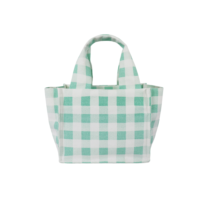森系上班小拎包 帆布網紅小紅書小方包 韓國綠格子小眾手拎單肩包